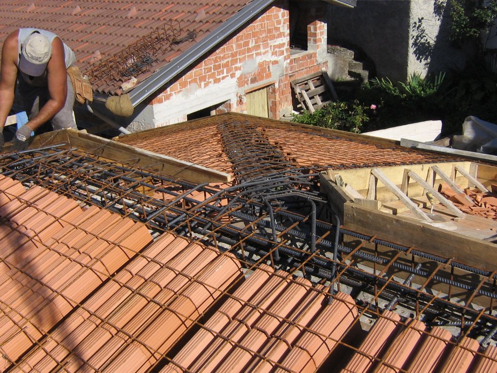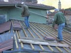 La ristrutturazione interessa le parti strutturali di un immobile in pietra, in parte demolito, e consiste nel rifacimento di un solaio e del tetto in latero-cemento.