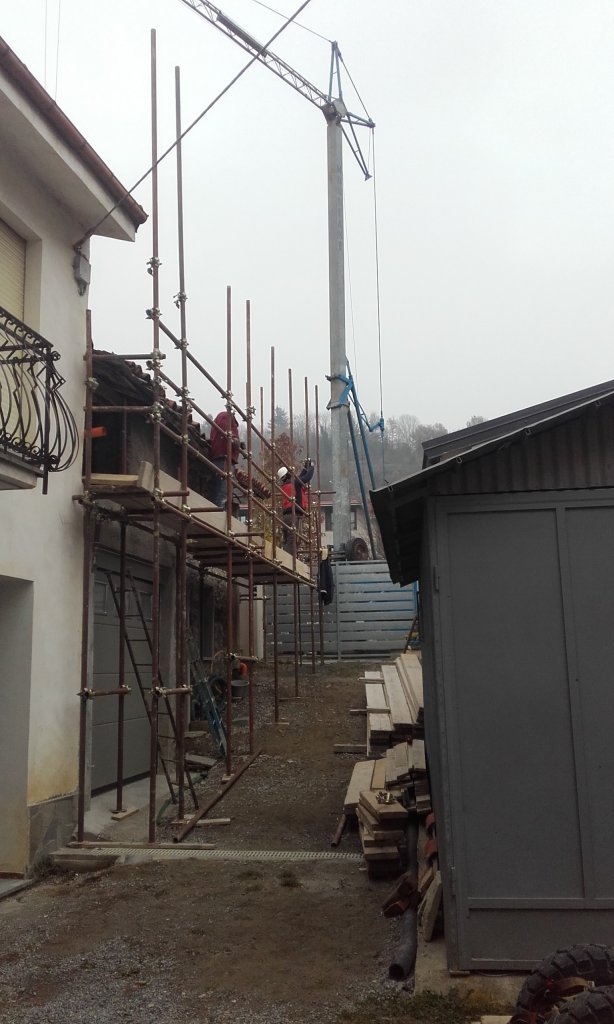 Smantellamento vecchia copertura e costruzione della nuova in legno.