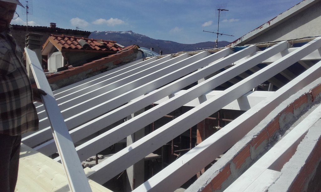Montaggio tetto in lamellare bianco